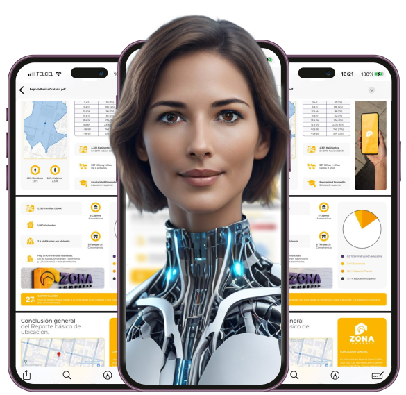 Reportes en PDF con análisis detallados de cada propiedad en la que estés intermediando; Refleja la información crítica sobre el entorno geográfico, demográfico, social, económico y de movilidad proporcionando una ventaja competitiva en tus contratos de exclusividad y propiedades y aportando un valor adicional a tus clientes compradores, inversionistas y vendedores.